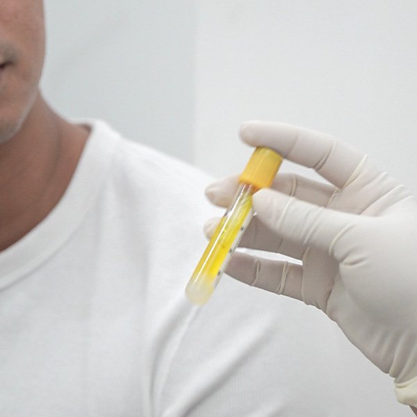 A small sample is taken safely